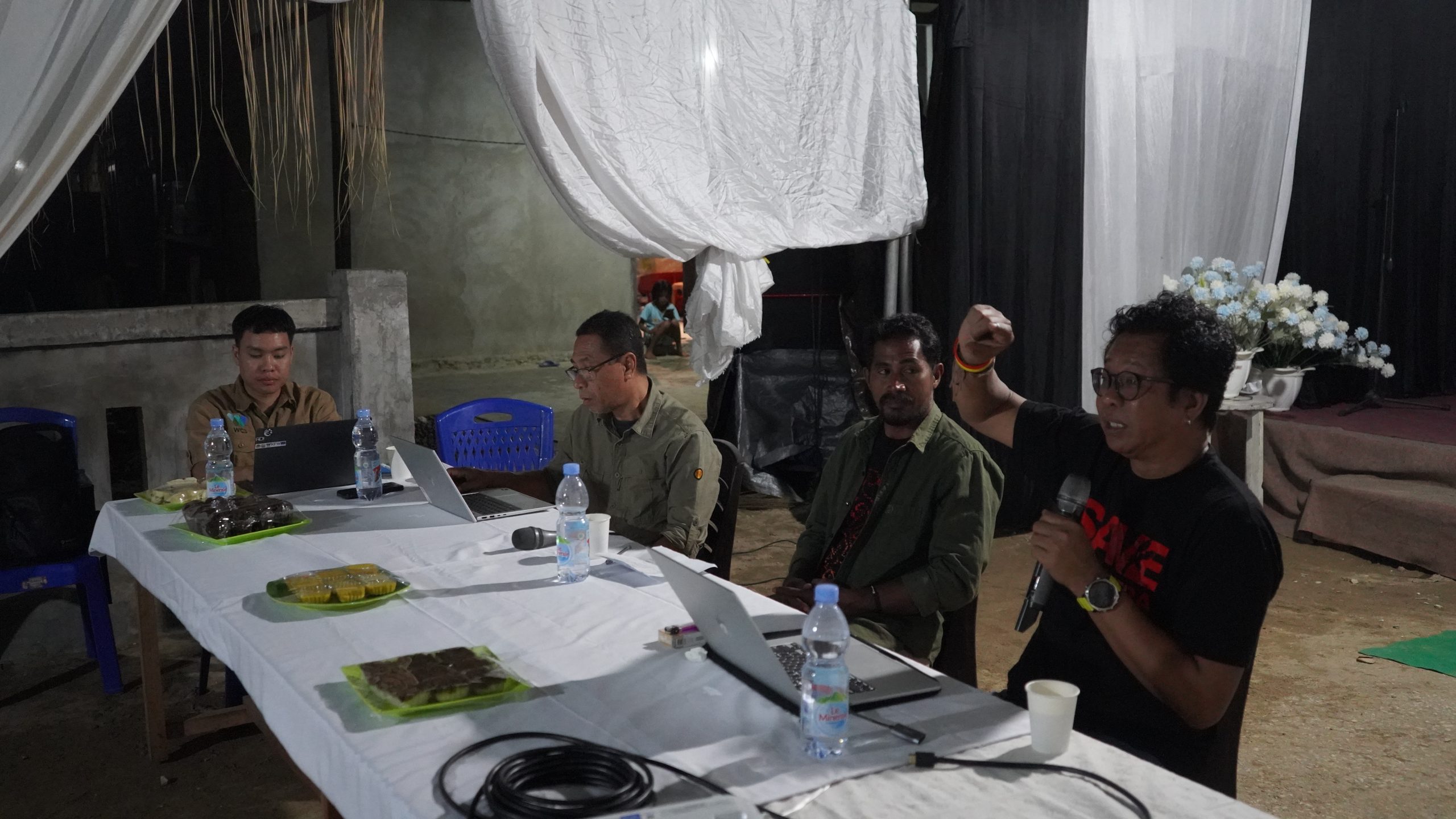 Executive Director Fala Lamo, Jefferson Tasik, dalam pertemuan bersama masyarakat adat Bicoli. (Dok Save Halmahera)