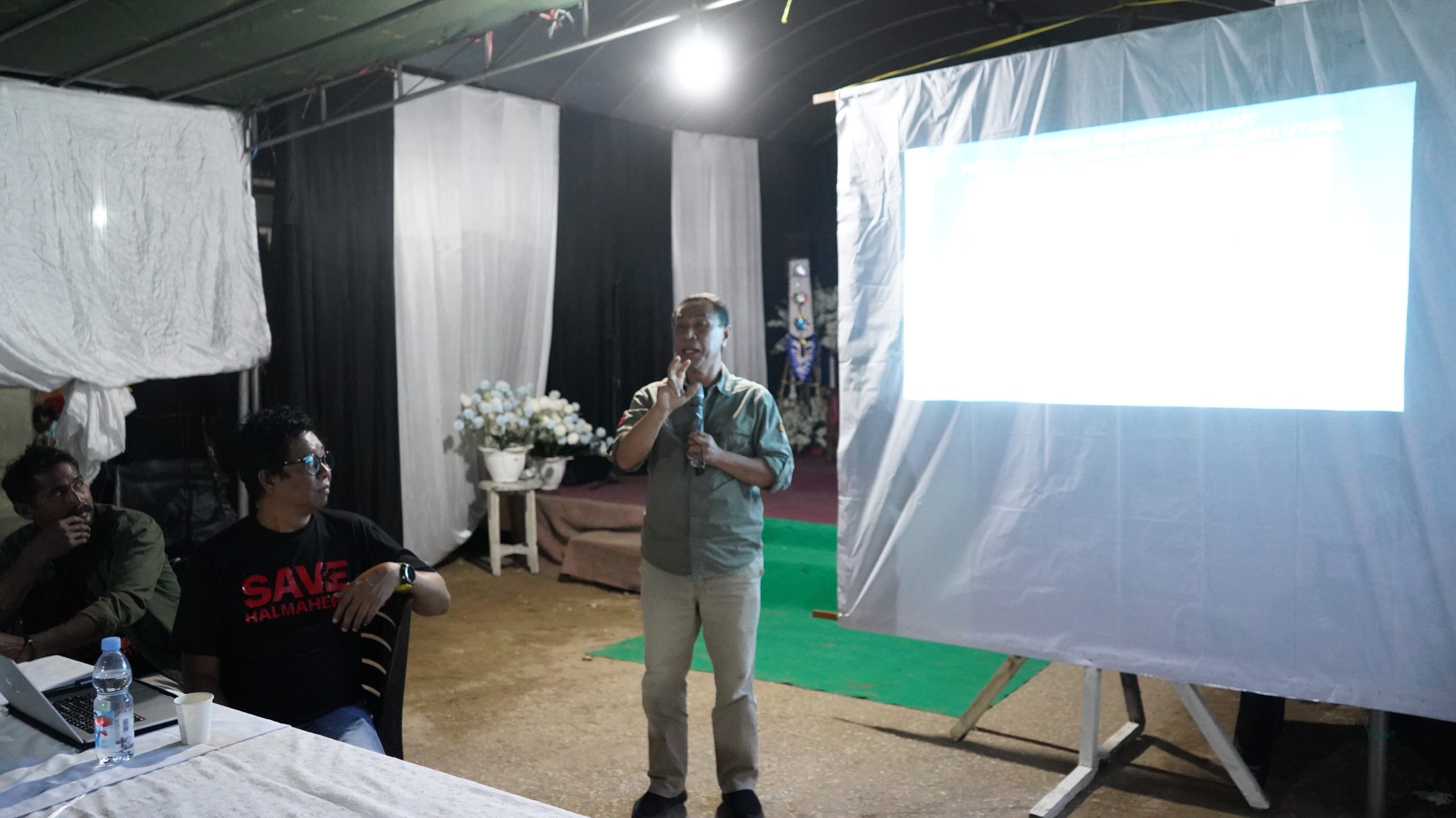 Executive Director Fala Lamo, Jefferson Tasik, dalam pertemuan bersama masyarakat adat Bicoli mengungkapkan kondisi lingkungan di Maba Selatan saat ini. Termasuk prospek ketahanan pangan ke depan.