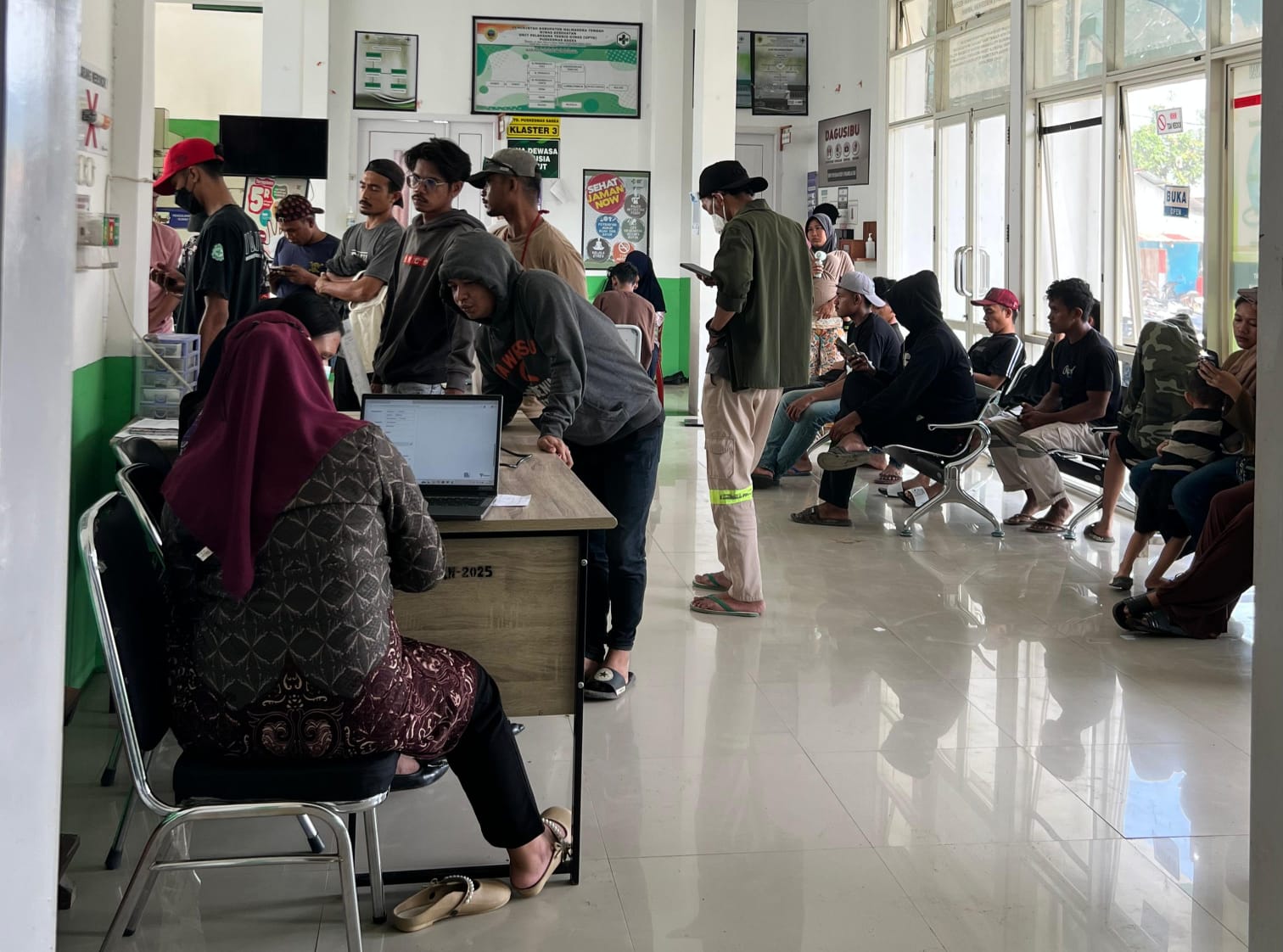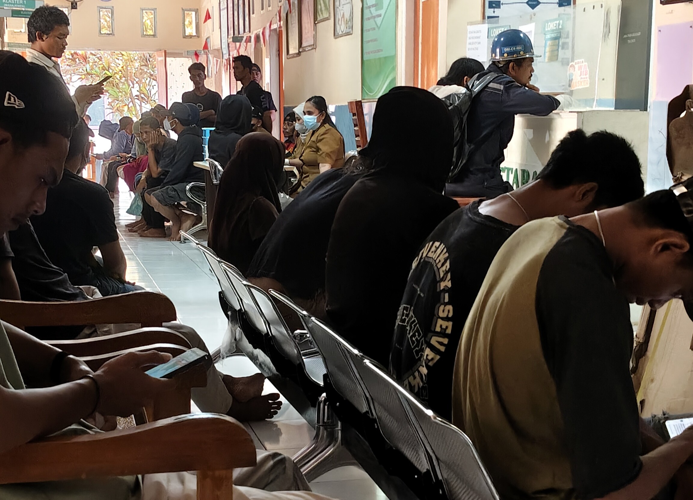 Para pekerja dan warga datang berobat di Puskesmas Sagea, Weda Utara, Halmahera Tengah. Foto: Nurkholis Lamaau
