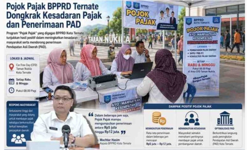 RAKYATMU.COM – Program Pojok Pajak yang digagas Badan Pengelolaan Pajak dan Retribusi Daerah (BPPRD) Kota Ternate, menunjukkan hasil positif dalam meningkatkan kesadaran masyarakat, serta mendorong penerimaan Pendapatan Asli Daerah (PAD).